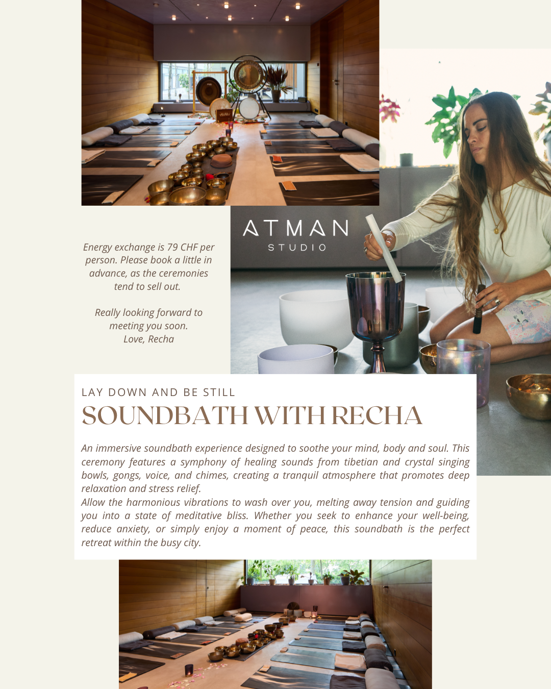 All kinds of yoga-styles, meditations, sound baths, thai boxing, soul circles - Atman is not only another new Yoga Studio in Zurich - it’s much more. It's a warm, open space filled to the ceiling with warmth from passionate people who want to create a safe space where you can get in touch with yourself, just breathe and feel the lightness within you. A room where people can meet and find themselves.